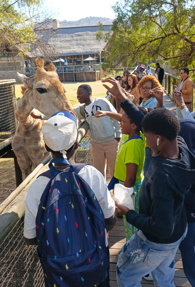 Le 12 août restera un moment fort pour nos jeunes explorateurs, plongés au cœur d’une immersion exceptionnelle entre nature et culture. La journée a commencé par un safari au Lions Park, une expérience unique qui leur a permis d’observer de près la majestueuse faune sauvage d’Afrique du Sud. Entre lions, girafes et antilopes, chaque rencontre a éveillé émerveillement et respect pour la nature.